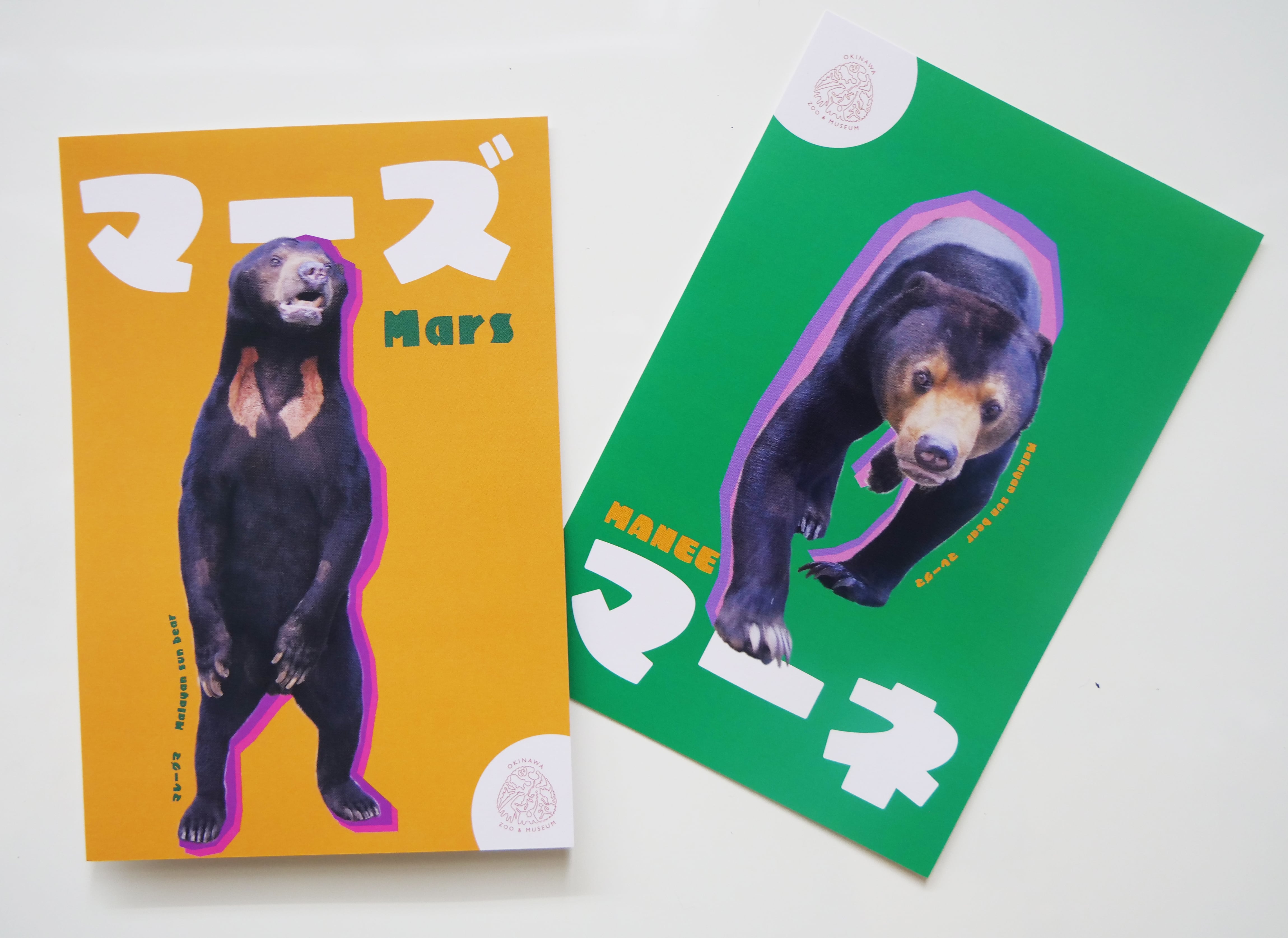 沖縄こどもの国でくらすマレーグマをモチーフにした、オリジナルデザインのポストカード2枚セットです。